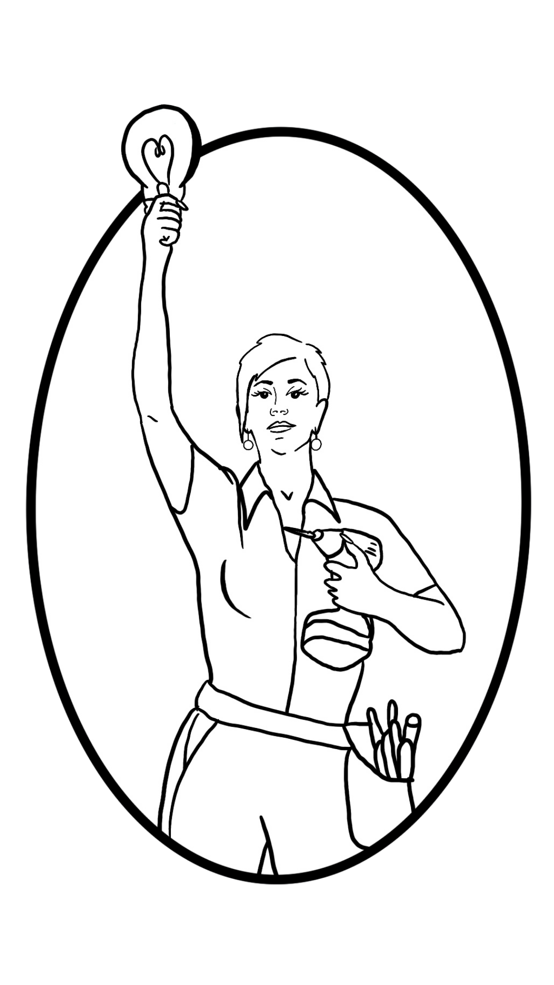 An illustration of Electric Lady, and Iowa City electrician, holding a light bulb up like the Statue of Liberty